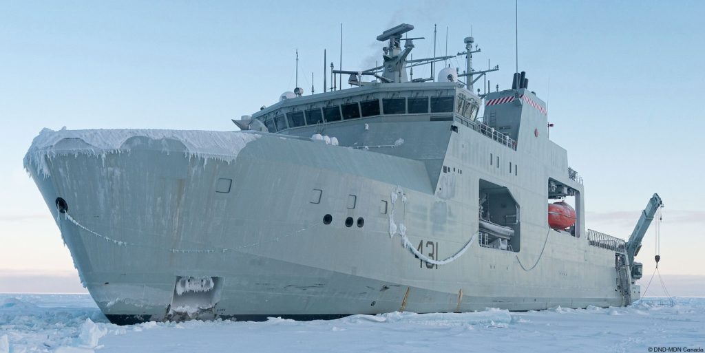 Construido por Irving Shipbuilding, la construcción del buque comenzó en 2017, fue botado en noviembre de 2019 y entregado a la Marina Real Canadiense en julio de 2021. Su ceremonia oficial de nombramiento se llevó a cabo en mayo de 2022, y fue comisionado en octubre del mismo año.