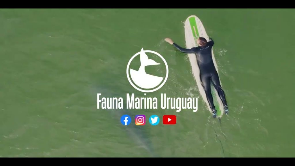 Los delfines toninas siguieron por un buen rato al surfista en el agua. Un grupo de 15 delfines toninas se pudieron avistar en la playa de Zanja Honda de La Paloma, en el departamento de Rocha.