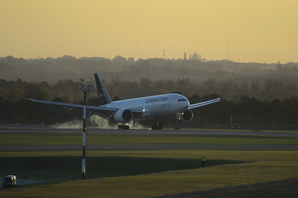 Montevideo, Uruguay 8 de Mayo 2021 Sociedad, Llegaron 1 millón de vacunas de SINOVAC en un vuelo de Lufthansa Cargo al aeropuerto de Carrasco a las 17:30hr. Foto Gastón Britos / FocoUy
