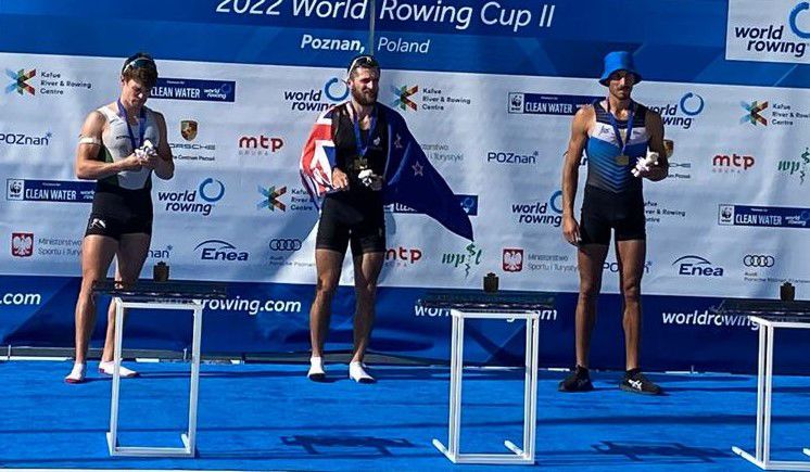 El uruguayo fue tercero en la final del single ligero y se quedó con la presea de bronce en Poznan, con un remate de regata inolvidable. El remero uruguayo Felipe Klüver se quedó con la medalla de bronce en la categoría single ligero de la Copa del Mundo de Poznan, Polonia, un nuevo mojón en la historia de Uruguay en esta clase de justas a nivel senior. Klüver, de 22 años de edad, terminó la regata definitoria sobre 2000 metros con un tiempo de 6:46.86 luego de una tremenda remontada y remate donde bajó del sexto puesto en los primeros 500 metros directo al podio en la llegada. Nuestro compatriota había debutado el viernes en la fase de series de la modalidad donde había sido cuarto pasando al repechaje para alcanzar las semifinales, regata que ganó. En las semis fue tercero lo que lo derivó en la gran final. El otro uruguayo que participó en el single ligero fue Bruno Cetraro que ganó la final “B” y por lo tanto fue séptimo. Recordemos que Bruno y Felipe fueron la dupla que integró el doble par ligero que ganó el diploma olímpico en Tokio 2021 al finalizar en la sexta colocación.