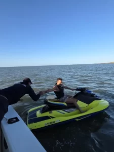 Finalmente, sobre las 07:00 horas, tras ejecutar patrones de búsqueda con derrotas paralelas a la costa, la unidad logró avistar la moto acuática y a su conductor a unas 6 millas náuticas de la costa, constatándose que el mismo se encontraba en buen estado de salud. El motonauta indicó haber sufrido una posible falla mecánica que le impidió mantener la propulsión de la embarcación.