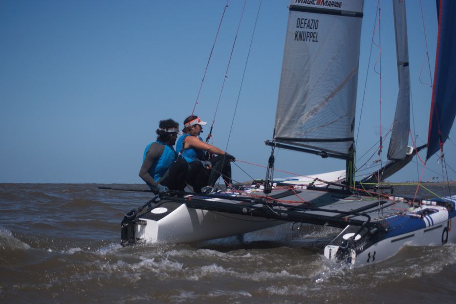 Defazio y Knüppel, clasificados a Tokio en vela, enfrentan la pandemia: «si podemos navegar, navegaremos y si no, entrenaremos físico». Los veleristas Pablo Defazio y Dominique Knüppel son dos de los tres uruguayos que están clasificados al día de hoy a los Juegos Olímpicos de Tokio 2020, para lo cual viajaron a Europa a entrenar y competir, algo que la pandemia del coronavirus, les puso muy cuesta arriba. El 10 de marzo, los uruguayos partieron rumbo a España, su primera parada de una serie de puntos planificados, con la finalidad de, no solo acceder al barco que alquilaron (nacra 17), trailer y demás, sino comenzar a preparar su participación en el torneo «Princesa Sofía» de Palma de Mallorca. «En nuestro segundo día (en tierras ibéricas) nos avisaron que se cancelaba», contó Pablo Defazio a FútbolUy: «allí fuimos a buscar el barco y pensar que hacer. Primero vimos con buenos ojos en ir a Palma a entrenar igualmente, algo que con el correr de las horas descartamos porque las medidas fueron endureciéndose». «Allí recibimos una invitación para ir a La Grande Motte (Sur de Francia) de uno de los colegas y rápidamente decidimos aceptarla, por lo cual sobre la noche partimos vía terrestre ya que sabíamos que era cuestión de horas que cerraran las fronteras y no queríamos quedarnos en un lugar donde no estuviéramos cómodos», explicó el «Oveja».