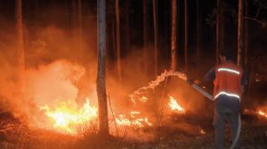 Siniestro de proporciones. Arriba de 1200 hectáreas de bosque consumidas por el fuego. El jefe de bomberos de Young, Francisco Rodríguez, acaba de informar a canal 11, que el fuego sigue sin estar controlado. Trabajo agotador que continuará mañana a primera hora, con apoyo de los equipos de tierra de las empresas privadas y de dos helicópteros que disponen las compañías forestales en Uruguay.