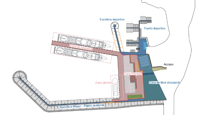 **Extensión de la escollera existente y construcción de nuevos muelles, oficinas, servicios sanitarios y áreas de operación.