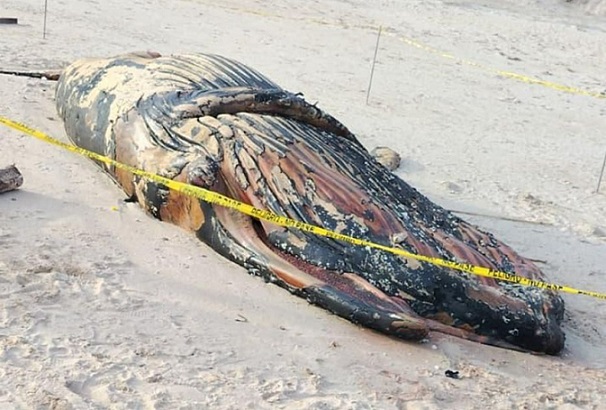 Ballena muerta varó en San José y preocupa su manejo