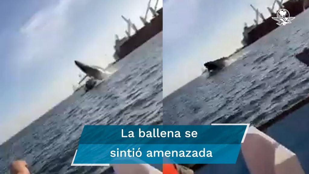 Ballena saltó fuera del mar y cayó en una embarcación en México