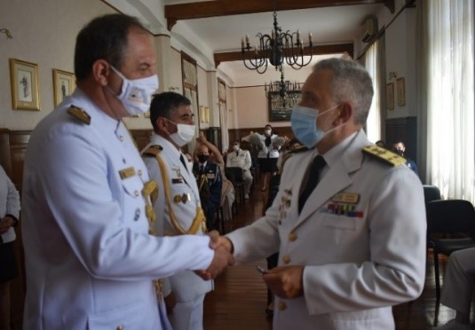 en el Salón Alcázar del Comando General de la Armada, se llevó a cabo la ceremonia de entrega de la Medalla “15 de Noviembre de 1817” a los Señores Agregados de Defensa y Naval a las Embajadas de la República Federativa del Brasil y de la República del Paraguay. En representación del Señor Comandante en Jefe de la Armada, el Señor Director General de Material Naval, Contralmirante Gustavo MUSSO fue el encargado de presidir dicha ceremonia, y estuvieron presentes el Señor Embajador de la República Federativa del Brasil, Don Antonio José FERREIRA SIMOES, Señor Embajador de la República del Paraguay, Dr. Rogelio BENÍTEZ, Señor Comandante de la Flota, Contralmirante Otto GOSSWEILER, Señor Prefecto Nacional Naval, Contralmirante José ELIZONDO, Señor Jefe del Estado Mayor General de la Armada, Contralmirante Gustavo LUCIANI, Autoridades Extranjeras, Personal Superior de la Armada y familiares de los condecorados. Dando comienzo a la ceremonia, se proyectó un video con la descripción heráldica de la Distinción “15 de Noviembre de 1817”. Acto seguido, se dio paso a la condecoración con la Medalla “15 de Noviembre de 1817”, Distintivo Blanco (Servicios Distinguidos de Carácter Especial y Notorio), al Señor Agregado de Defensa y Naval a la Embajada de la República Federativa del Brasil, Capitán de Mar y Guerra Carlos Roberto Rocha e Silva Junior y al Agregado de Defensa y Naval a la Embajada de la República del Paraguay, Capitán de Navío, Celso Noel Chavéz Caballero. Los Señores Agregados fueron distinguidos por su compromiso, dedicación e invalorable apoyo brindado a nuestra Institución; por sus elevadas cualidades personales y profesionales que han fortalecido y acrecentado los lazos de amistad y camaradería tradicionales entre nuestros países. https://www.armada.mil.uy/