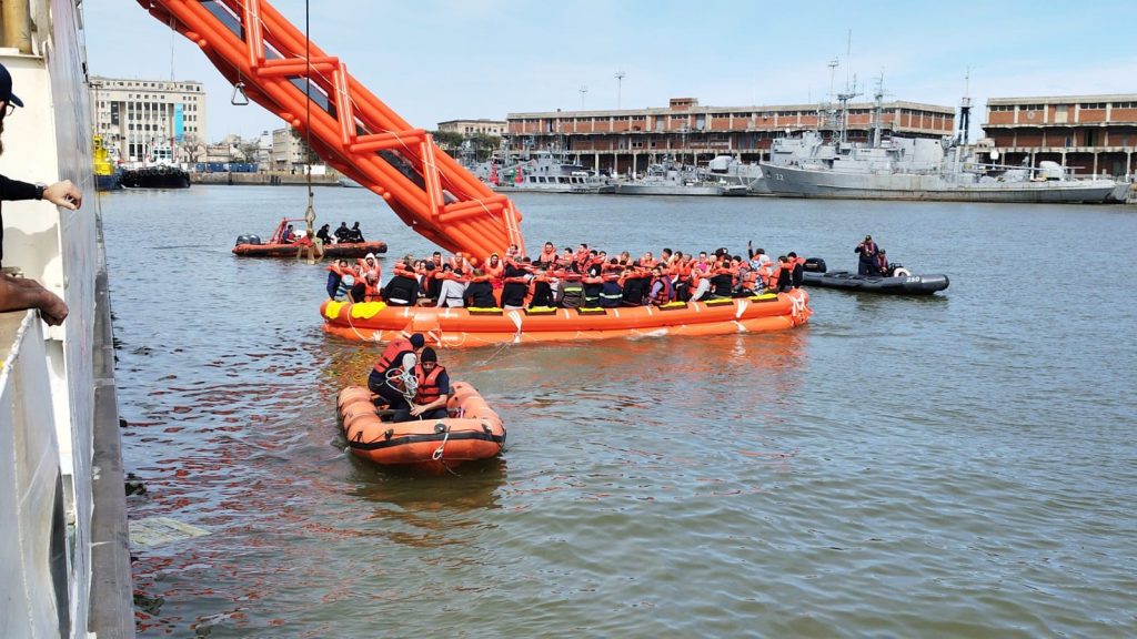La empresa Buquebus organizó un ejercicio de abandono del buque Francisco, en la Dársena Fluvial del puerto de Montevideo, en coordinación con la Prefectura Nacional Naval (PNN) y la Administración Nacional de Puertos (ANP). Se simuló una situación de peligro para poner en marcha un salvataje de personas, mediante el sistema de evacuación marino (MES). Al finalizar se realizó una evaluación del evento. MES es un dispositivo de salvamento que consiste en un tobogán inflable donde los pasajeros pueden evacuar desde el buque directamente a balsas salvavidas.