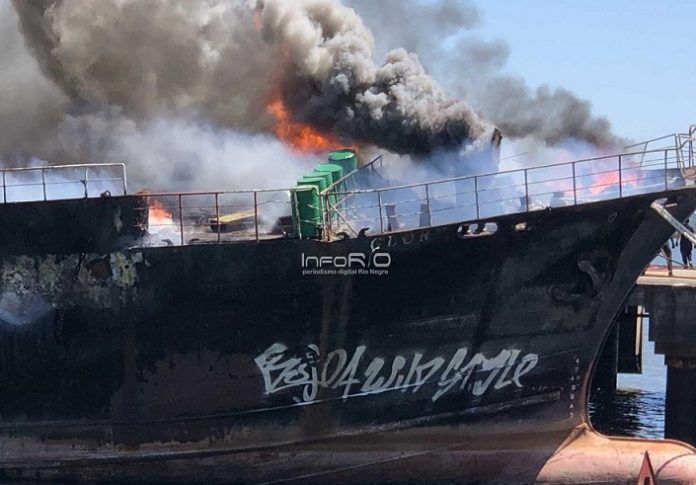 Reporte oficial de bomberos:  Poco antes de las 11:30 de este lunes 20 de febrero, se incendió un barco en desguace amarrado en el puerto de Fray Bentos, Río Negro, en el sector de desarmadero. Las llamas se propagaban con mucha intensidad en el interior del barco, generando una inmensa columna de humo. Los Bomberos de Fray Bentos combatieron las llamas con 4 puntos de ataque, con agua altamente presurizada. Al mismo tiempo, mediante la utilización de una grúa, se retiraron garrafas de gas, que estaban en la explanada del puerto a 50m del buque. Con la grúa, también se realizaron algunas descargas de agua, sobre el barco, para bajar las llamas y dispersar el humo. Se efectuaron aperturas sobre la cubierta y lateral del barco, con la colaboración de la empresa que realiza los trabajos de desarme del mismo, lo que permitió acceder con el agua presurizada al interior de la embarcación. A las 4:00 am aprox, se logró reducir las llamas a brazas solamente, continuando con el enfriamiento. Se introdujo una eletrobomba dentro del barco, para succionar el agua y extraerla hacía un camión cisterna, evitando que está agua contaminada se derramarse en aguas del río y logrando también con esta acción evitar que el barco se y hunda por inundación. A las 11:00 ya estaba totalmente controlado el incendio.  14:00 se extinguió el fuego, continuando solamente las tareas de extracción de agua del barco, por parte de personal de la empresa.  No hubo heridos. http://www.inforio.com.uy/
