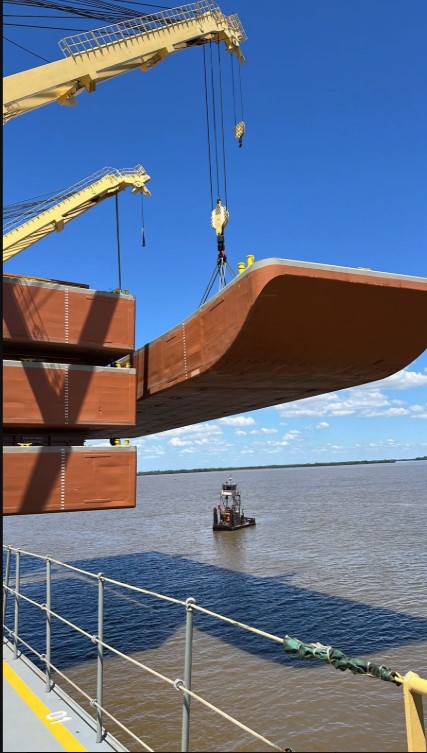 En una operación logística sin precedentes por su magnitud y complejidad, ingresó al puerto de Nueva Palmira el buque AAL Hamburg, proveniente del puerto de Belén, Brasil, transportando 16 nuevas barcazas pertenecientes a la empresa minera LHG Mining.