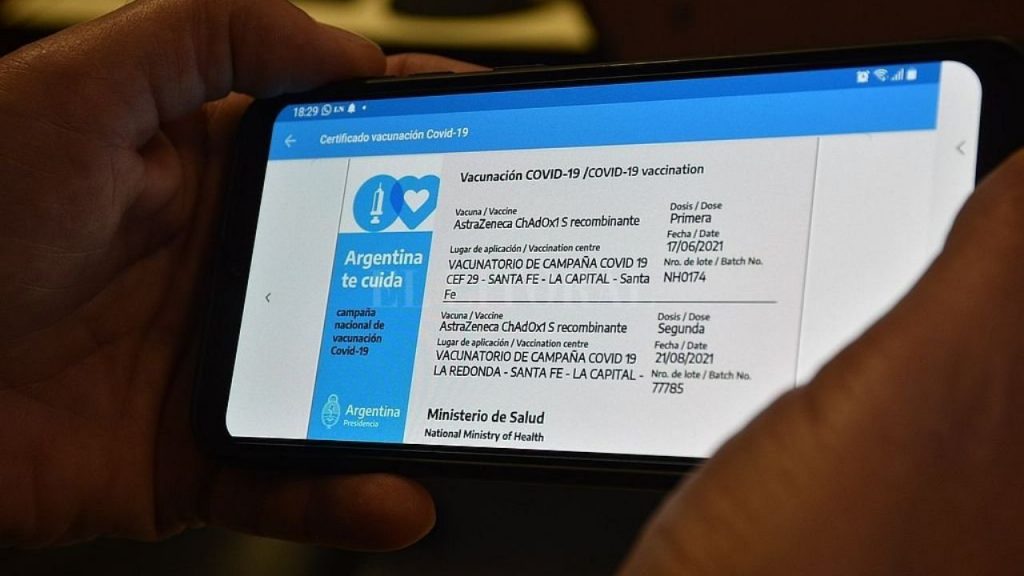 El Gobierno de Argentina ha anunciado finalmente que un pase de salud será requerido a las personas de 13 y más años que asistan o realicen “actividades de alto riesgo epidemiológico y sanitario”, según la resolución administrativa firmada por el presidente Alberto Fernández, el jefe de Gabinete Juan Manzur y Ministra de Salud Carla Vizzotti. Las personas englobadas por el decreto “deberán acreditar que cuentan con un esquema de vacunación completo contra el Covid”, que deberá acreditarse ante el personal público o privado designado para verificar el cumplimiento de la nueva norma. Las actividades alcanzadas por la medida son lugares de baile en interiores, viajes grupales y eventos masivos que reúnan a más de 1,000 personas, incluso si se realizan al aire libre. Se requerirá que las personas presenten las tarjetas de vacunación a través de la aplicación “CuidAr” para teléfonos inteligentes, para lo cual se necesita la versión 3.6. Ahora está disponible en una versión de prueba y estará en pleno funcionamiento a partir del 1 de enero de 2022, anunciaron las autoridades.