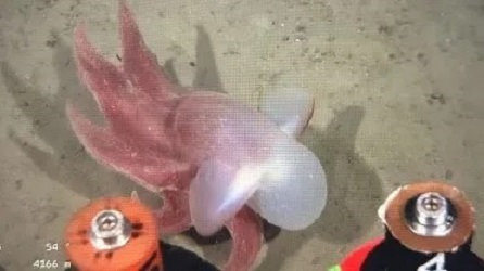 Durante la última expedición de Uruguay Sub200 a bordo del Falkor (too), los científicos hicieron un hallazgo que maravilló a todos: un pulpo Dumbo (Grimpoteuthis) a más de 4.000 metros de profundidad, en la zona más alejada bajo jurisdicción uruguaya, a más de 400 km de la costa.